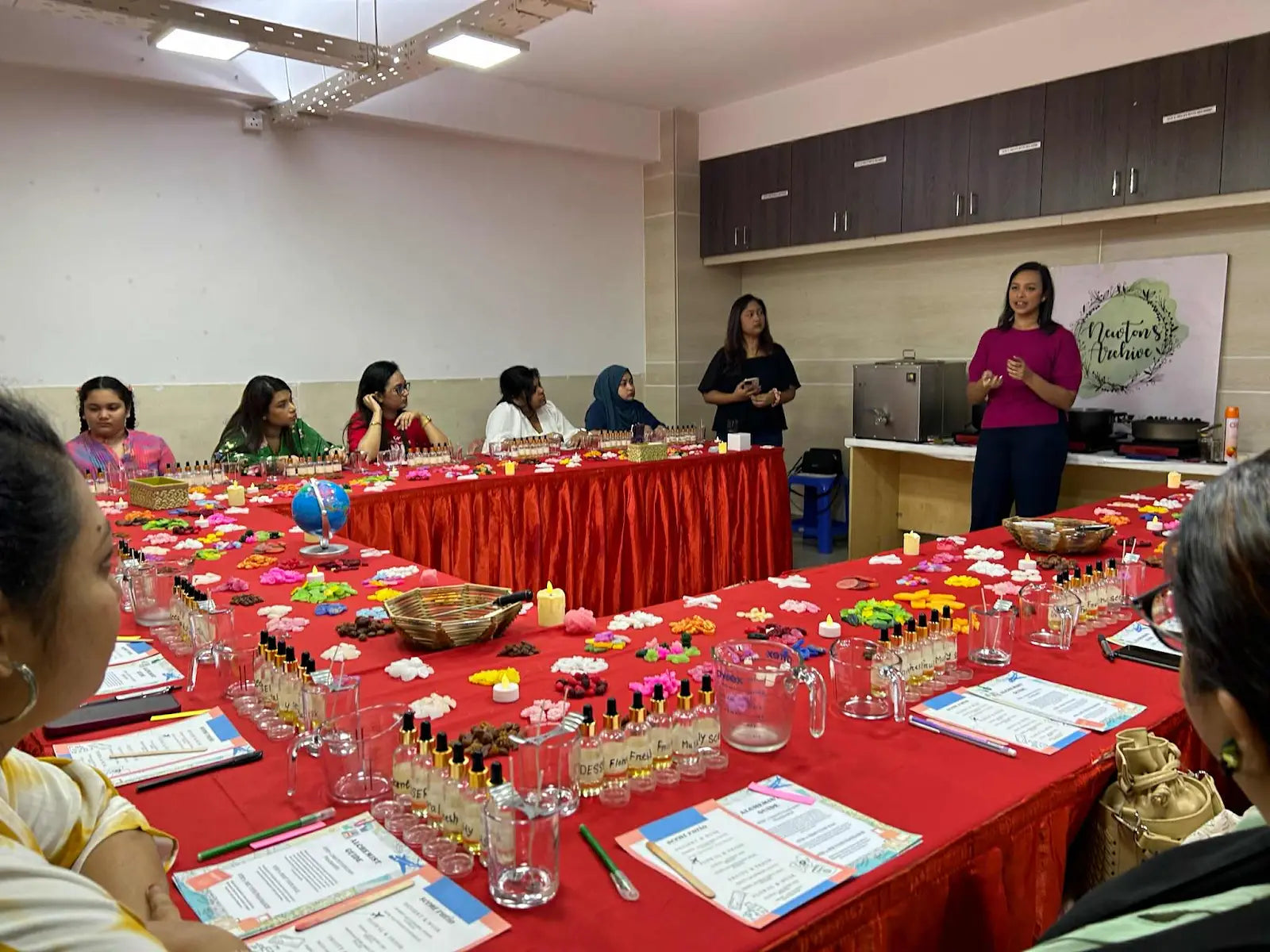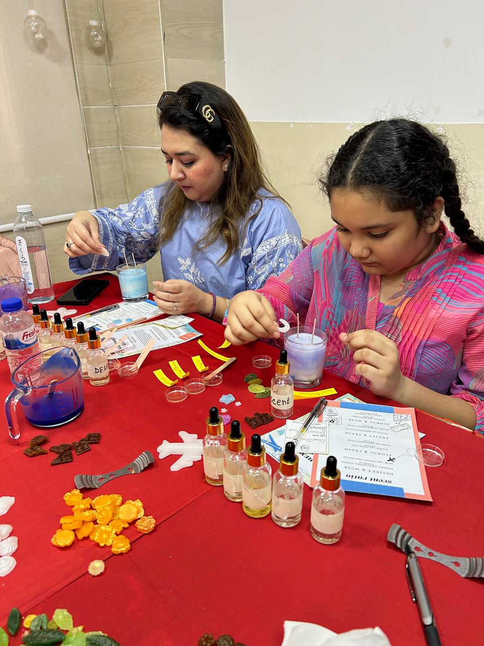 1. Craft their own custom scented candle, blending fragrance oils and decorating with curated wax motifs, and Bangladeshi-inspired wax details such as shapla petals and florals.